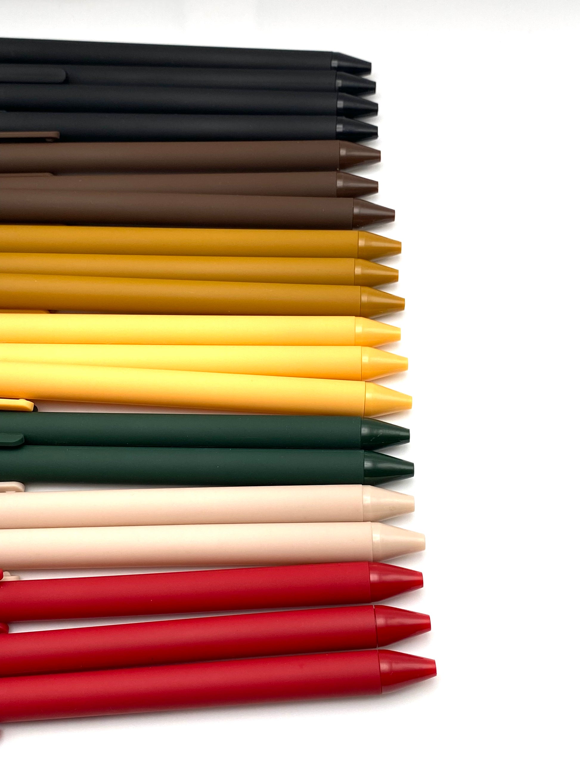 These lightweight pens are available in seven distinct colors, each featuring smooth black ink for clear, professional writing.